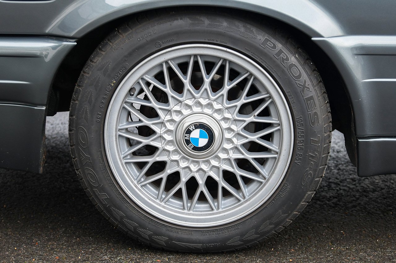 The 325i M Sport came complete with the M Sport trim and body kit, but this one goes further with a manual gearbox, M Sport leather seats, sunroof, and I believe an on-board computer was an option. Dolphin grey or Delphin grey, (as sometimes described), sets this car off very well. Against the M-Tech II body kit and the large BBS factory wheels, this is an eyeful.