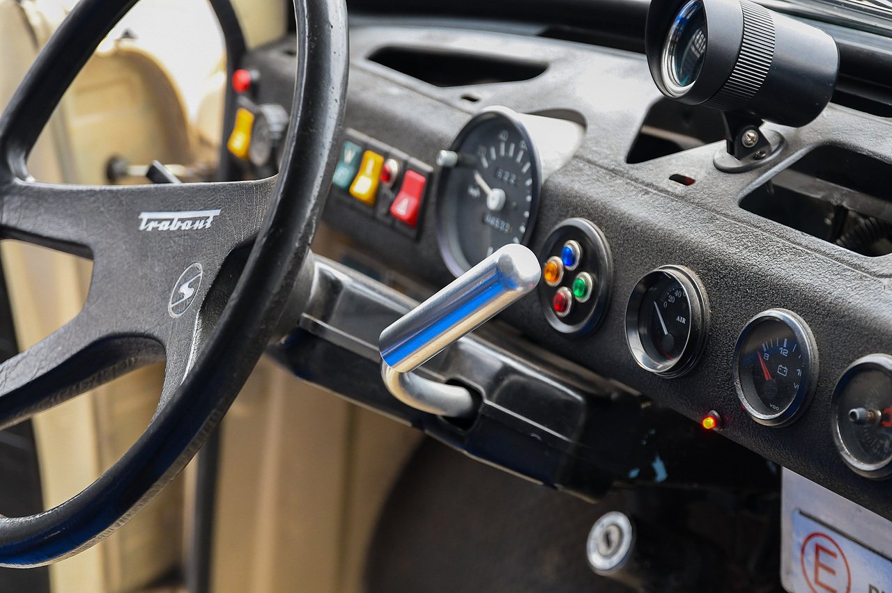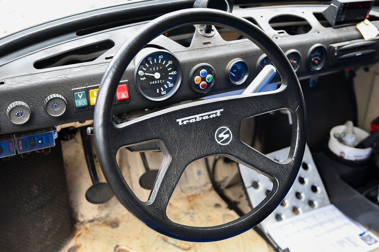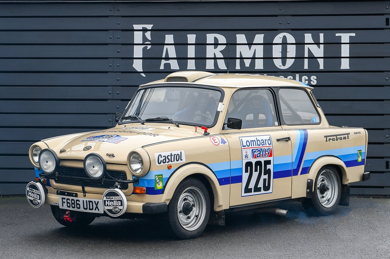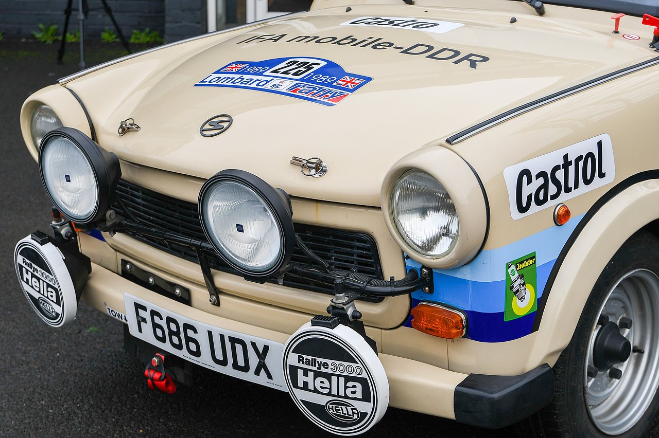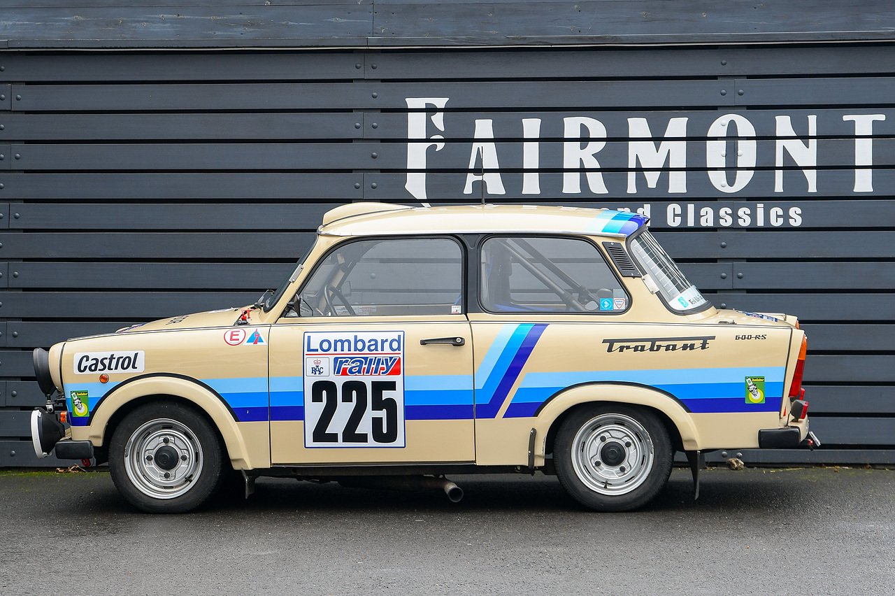 This Trabant 601 is a replica of the state controlled German Democratic Republic GDR rally cars of their time. Overseas cars were forbidden and home-built cars which included the Wartburg, were the serious contenders in motorsport competition.