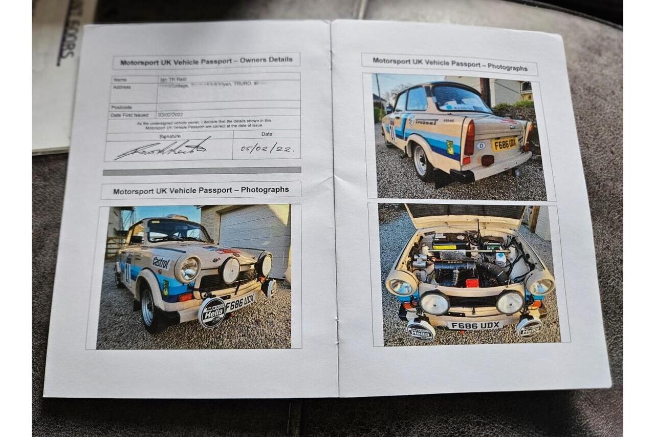 We are delighted with this car, in particular the standard to which it has been modified. It has been built to RS700 Race Spec and to an exemplary standard. So good is it, this example has a current Motorsport UK Rally vehicle passport. There are two box-files that are full of technical information and invoices from Trabant specialists for rally items, purchased by the previous owner. These invoices are for huge amounts of money, with the number of items bought and fitted. It seems that parts are readily available from UK suppliers and throughout Europe.