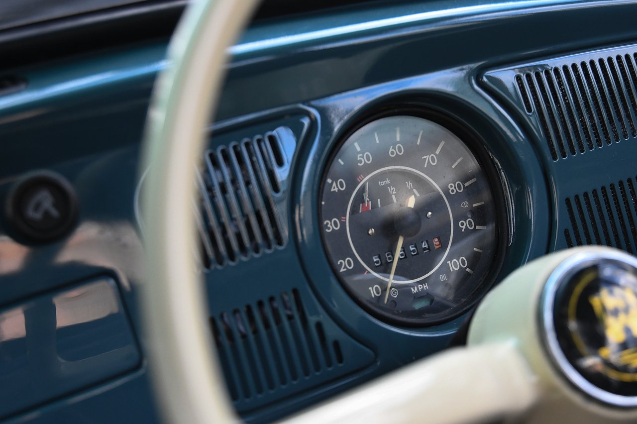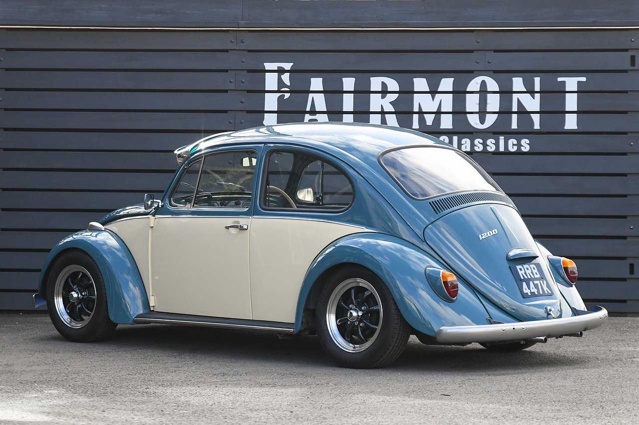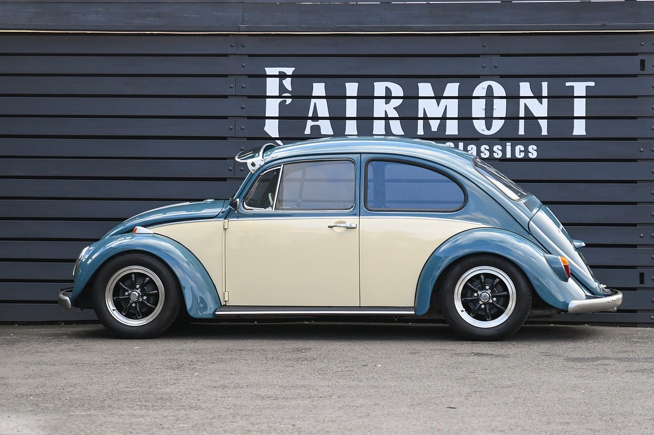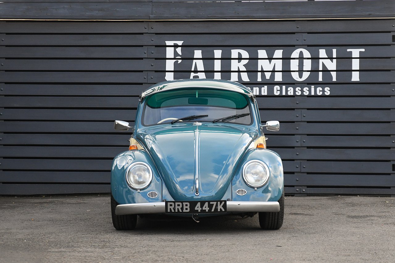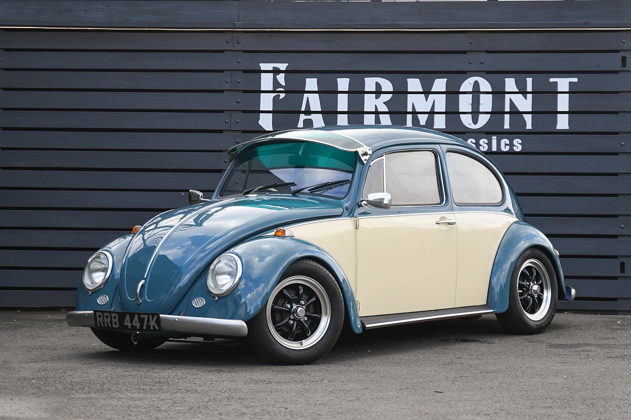 Our car is a 1971 1200, first registered on 16th November 1971. Presented in dove blue over ivory, it certainly looks the part of a stylish custom cruiser. It has a black upholstery with the dove blue exterior paint carried through to the inside alongside funky but subtle custom door cards. The headlining has been replaced and the alloy wheels in gloss black with chrome rims look just right with the lowered ride height.
